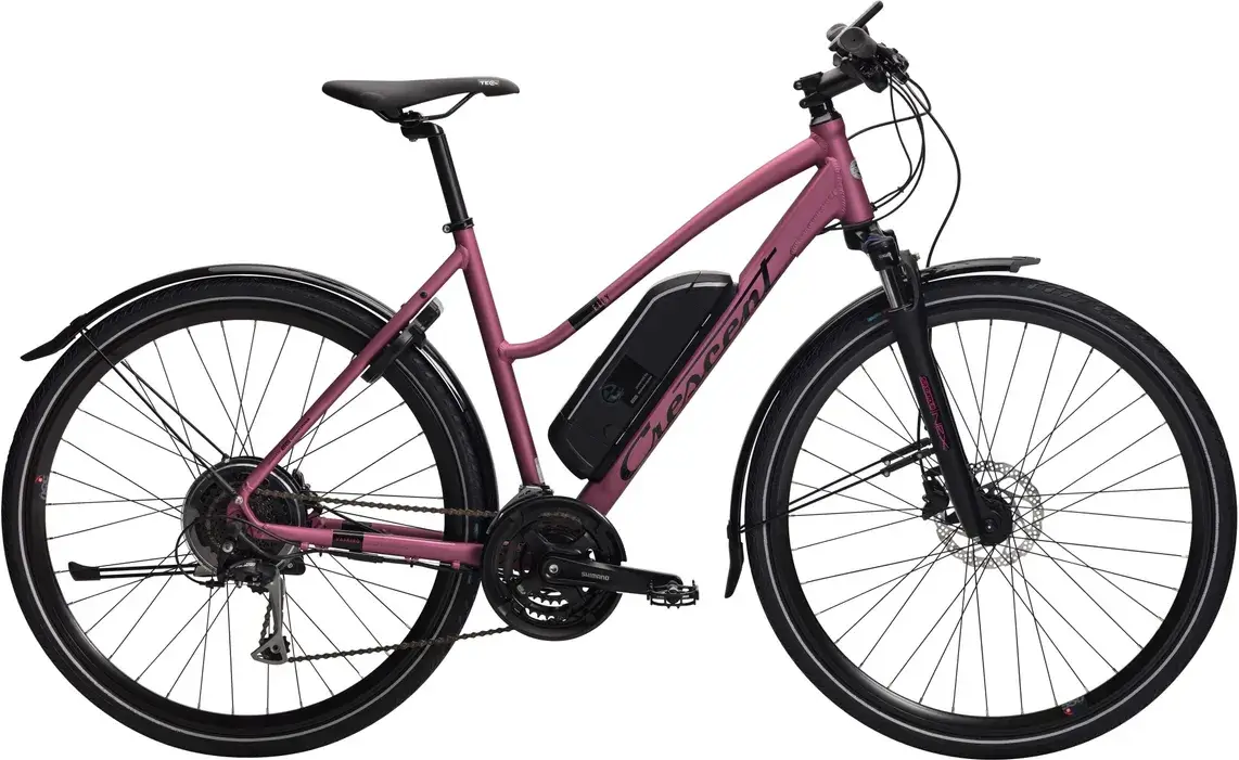 Crescent Elly är en färgglad pendlarcykel med snygg design och motor i bakhjulet. Ett 11Ah batteri sitter på ramröret. Denna elcykel kombinerar prestanda och pris på ett bra sätt utan att för den skull göra avkall på kvaliteten. Det gör Elly till ett kostnadseffektivt alternativ till bil eller kollektivtrafik. En fördel med motor bak är att kedja och drev inte utsätts för påfrestningar när du ändrar hastighet eller stannar för rödljus. Systemet på denna elcykel är Crescents egenutvecklade och kallas EGOING. Att cykla på Elly är enkelt och nästan svettfritt. Finessen med elcykeln är att du själv väljer effektläge utefter hur mycket hjälp du vill ha och sedan är det bara att börja trampa. En stor och tydlig LCD-display visar effektläge, hastighet, batteriets laddnivå och hur långt den kraften kan ta dig innan det är dags att koppla det till ett eluttag. Tack vare de 24 växlarna, hydrauliska skivbromsar, dämpad framgaffel, skärmar och stöd är Elly en lika praktisk som snabb elcykel. Ramen har en geometri hämtad från Crescents sportiga hybridcyklar och det gör Elly till en väldigt bekväm elcykel att pendla på, även om du har riktigt långt till jobbet.